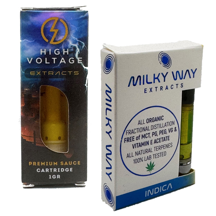 Here at Cannabis Vapes, we want to bring all the different brands and types of vape cartridges together in one convenient location. Our easy to navigate menu allows you to shop by brand where you will find many of the leading cartridge suppliers such as High Voltage Extracts (HVE), Milky Way Extracts, Naturally Farmed Cannabis (NFC), Caviar Extracts, Secret Garden Extracts and Dab Lab. Alternatively you can also shop by types such as CBD, Distillate, FSE (Full Spectrum Extracts) and Solvent Free.